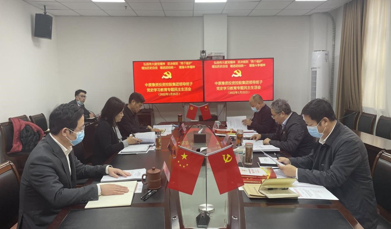 1月25日下午,豫資控股集團黨委召開黨史學習教育專題民主生活會。會議圍繞“認真學習貫徹習近平新時代中國特色社會主義思想及十九屆六中全會精神,大力弘揚偉大建黨精神,堅持和發展黨的百年奮斗歷史經驗,堅定歷史自信,踐行時代使命,厚植為民情懷,勇于擔當作為,團結帶領人民群眾走好新的趕考之路,認真查找在‘五個帶頭’方面存在的問題,以優異的成績迎接黨的二十大召開,為譜寫新時代中原更加出彩的絢麗篇章貢獻豫資力量”這一主題,扎實開展批評與自我批評。集團黨委書記、董事長秦建斌主持會議并作總結講話。省政府國資委黨史學習教育第一巡回指導組副組長、省政府國資委服務五處處長任光亮同志,省政府國資委黨史學習教育第一巡回指導組成員、省政府國資委離退休辦副處長刁春林同志到會指導,集團黨委副書記、副董事長、總經理繆文全,集團黨委委員、監事會主席王俊嶺,集團副總經理周延虎出席會議。集團黨群工作部、紀檢監察部、人力資源部、辦公室負責人列席。